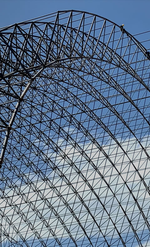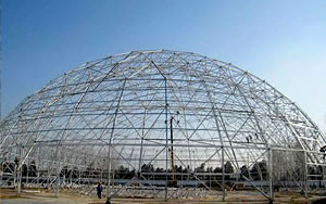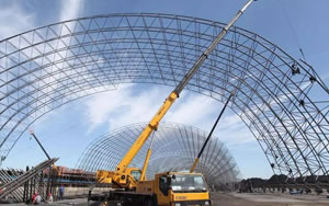 干煤棚網(wǎng)架主要搭建機構為平面剛架、平面桁架、平面拱以及柱面網(wǎng)殼結構。